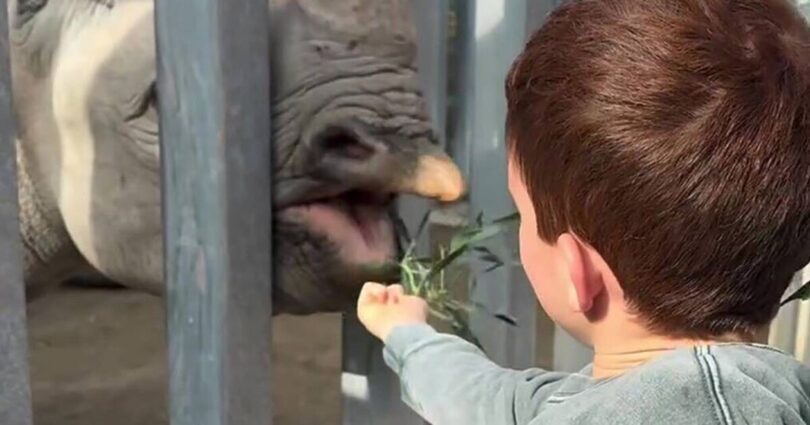 In another touching moment, Archie was filmed feeding a rhino during an outing to the Living Desert Zoo in Palm Springs – and as a zoo employee explained how the animals can tip the scales at 3,000lbs, the six year old could be heard responding « what » in an American accent.