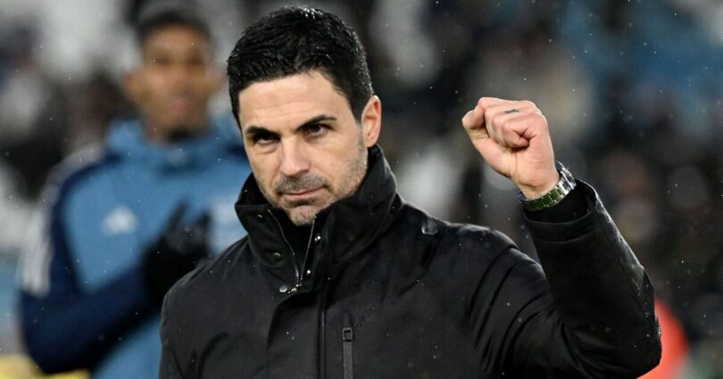 Mikel Arteta celebrating Arsenal’s win over Leeds. (Image: Getty)