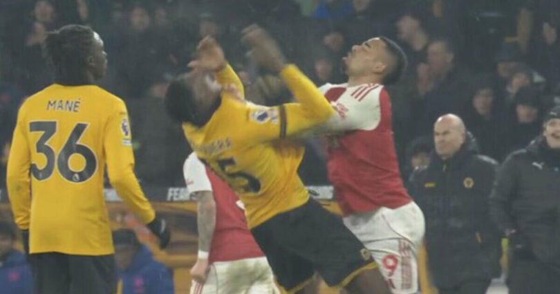 Gabriel Jesus lost his cool and pushed Wolves defender Yerson Mosquera as the final whistle blew and Arsenal dropped two points in a late 2-2 draw at Molineux. The Gunners’ draw ensured that the Premier League title is now in Manchester City’s hands, following a second consecutive league draw, as a result of Tom Edozie’s late goal on his debut.
