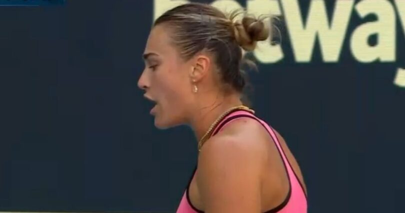 “She just said before the return on the backhands that she missed, that she was not even aiming for the return of serve, so I think she’s feeling the pace from Aryna Sabalenka, that disturbs her a lot.”