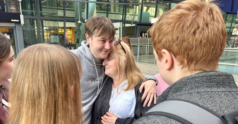 Sarah Short is greeted by her son Finn Howard as she arrives at Terminal 5 at London Heathrow Airport on a flight from Muscat. Thousands more Britons stranded in the Middle East are returning home as airlines ramp up their flights from the region. Picture date: Thursday March 5, 2026. PA Photo. A UK Government charter flight is repatriating Britons from Muscat, but it has been reported there will be no major evacuation of the 130,000 British nationals who have registered their presence in the Middle East. Photo credit should read: Jonathan Brady/PA Wire (Image: PA)