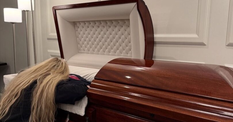 Erika Kirk, widow of assassinated conservative activist Charlie Kirk, has shared a series of heart-rending images to her 3.3 million followers showing her collapsed in grief beside his lacquered wooden casket, hours after vowing to continue his political mission. In the footage, Erika, 31, is seen stroking her husband’s hand, dressed in a dark suit and red tie, whispering, “I love you. God bless you,” through sobs.