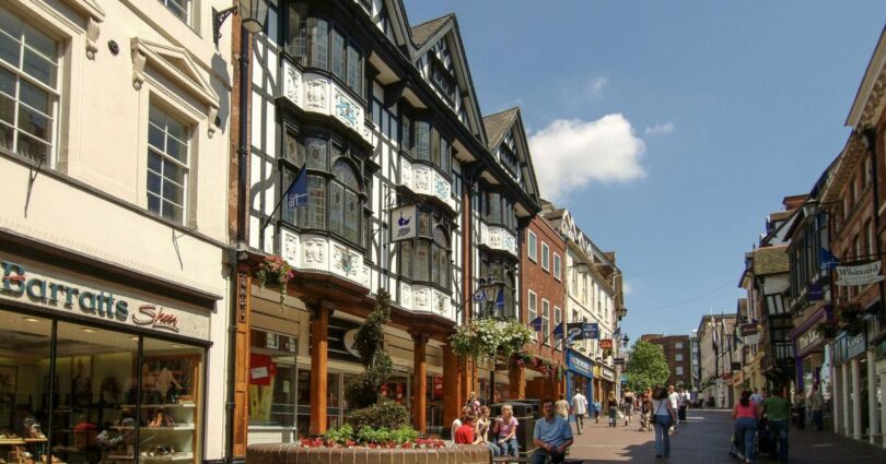Wyle Cop is a renowned high street in the heart of Shrewsbury, characterised by medieval timber-framed buildings, packed with independent shops offering everything from boutiques and jewellery to flowers and vintage gems. It’s also known for having one of the ‘longest rows of uninterrupted independent businesses in the UK’, thanks to its selection of eateries and coffee shops that make up this thriving area.
