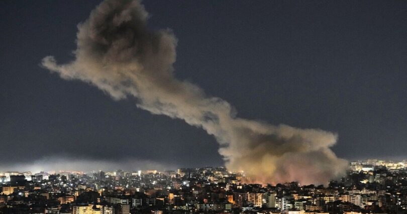 Smoke rises from Israeli airstrikes in Dahiyeh, a southern suburb of Beirut, Lebanon, this morning (Image: AP)