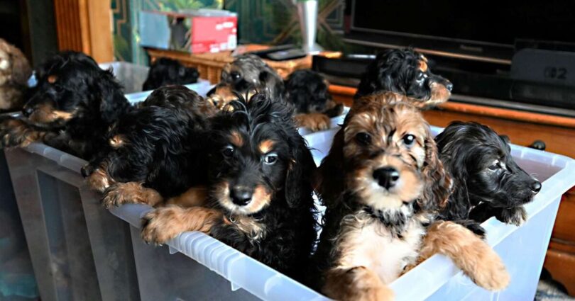 The pups are a crossbreed known as Irish Doodles, the result of Marigold mating with a poodle. The pooch’s brood is thought to be the largest litter of the crossbreed ever recorded in the UK.