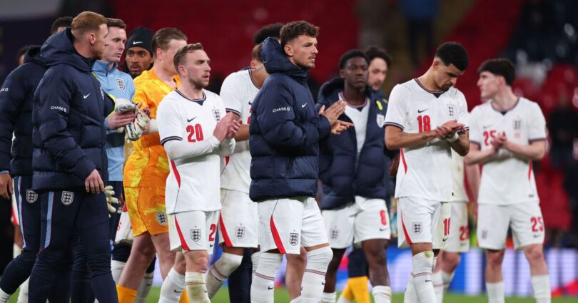 Following the draw with Uruguay, England suffered defeat as the hosts, deprived of Harry Kane through injury, lacked any genuine cutting edge while starting without a recognised striker. Substitute Marcus Rashford’s 77th-minute attempt was, remarkably, England’s first shot on target. Morgan Rogers later blazed over from close range. Express Sport brings you our player ratings from Wembley…
