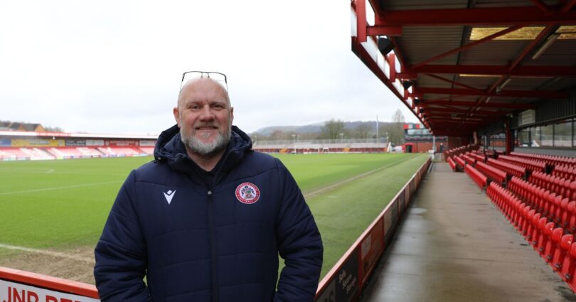 Upon my arrival, chief executive Warren Eastham took a break from his work on the club’s merchandise website to show me the sparkling corporate lounge adjacent to the new artificial, puddle-free pitch – a facility worthy of a mid-table League Two side now exceeding expectations, following years languishing in football’s seventh tier.