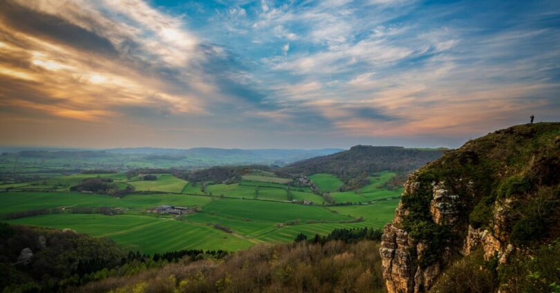 The celebrated Sutton Bank cliff, more commonly known as Roulston Scar, is a striking hill in North Yorkshire – specifically, a limestone escarpment – and from its summit, visitors can savour one of Britain’s most breathtaking landscapes.