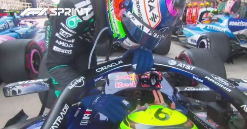 But that punishment, and the time between the collision and the end of the Sprint, were not enough for Hadjar to have calmed down enough. Footage from the camera mounted on board his Red Bull showed Antonelli approach him while in parc ferme and Hadjar, still seated in the cockpit of his car, wave away the hand of apology offered to him by his fellow F1 sophomore.