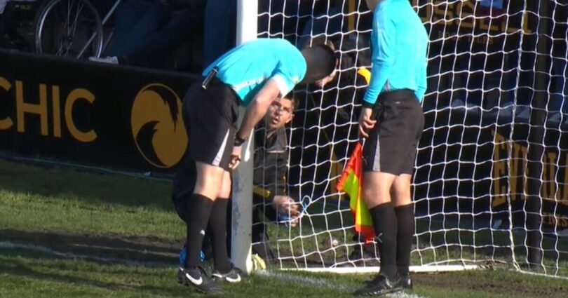 While this was going on, the referee and his assistant, along with a stadium official, were seen tending to the net in the goal. A hole had appeared, which needed repairing before kick-off could take place, leading to a hefty wait for the players on the pitch.