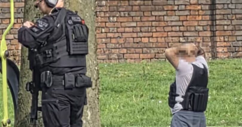 Despite the frightening misunderstanding, the man — speaking on the condition of anonymity over fears for his safety — said he told the police “it’s better safe than sorry » and praised the coppers for how they treated him. The incident unfolded following reports of a “suspicious male” in a vest, carrying what some feared was a cable or “wires”, at the park in the Higher Broughton area at around 11.52am on Friday. Panic spread online as dozens of images and videos quickly circulated, with false claims he was wearing a « suicide bomb » or « bomb vest ».