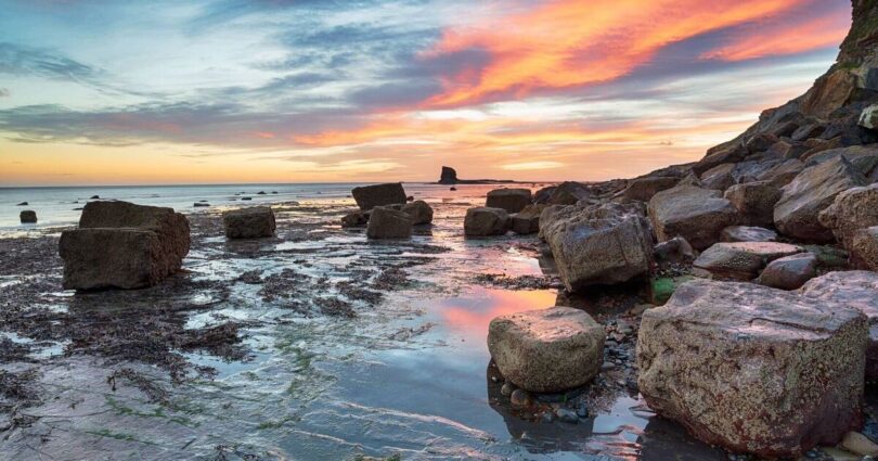 Saltwick Bay is celebrated for its spectacular sunrises and sunsets. The rock pools reflect the vibrant tones of the orange sun and between May and July the rare ‘double sun’ phenomenon casts a second luminous sphere across the sea.