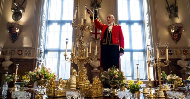 Here, the Daily Express looks at some of the stunning pictures of the set-up of yesterday’s banquet.