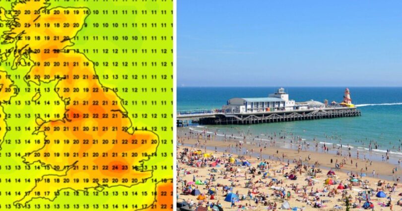 Incredible weather maps turn red as 24C heat bomb roasts Britain – check your area | Weather | News