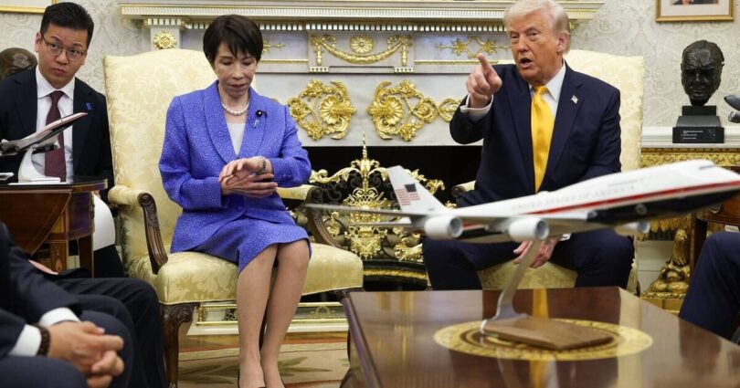 James observed Takaichi’s « very demure pose » as she sat opposite the president, her hands folded across one leg, whilst Trump spoke. During the meeting, Trump called Takaichi a « popular, powerful, great woman.