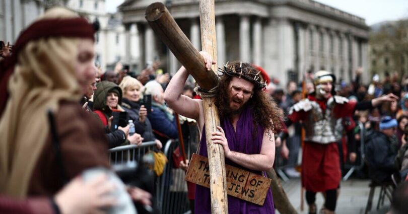 But did you know there’s an annual free production held on Good Friday in London’s Trafalgar Square, and it is streaming now on social media? (See below.)