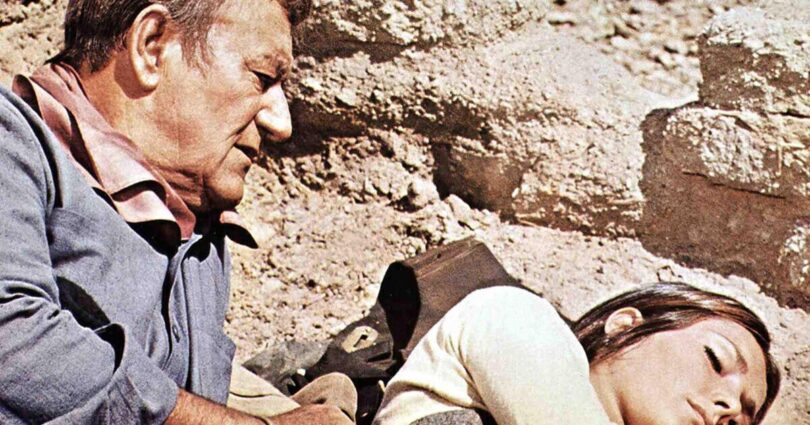 At this point in his career, the 62-year-old Wayne was in poor health having had a cancerous lung removed just a few years earlier. The star, who was 13 years older than Jack Elam’s Old Man character, struggled to get on and off his horse and was still recovering from having torn a ligament in his shoulder when shooting 1969’s The Undefeated.