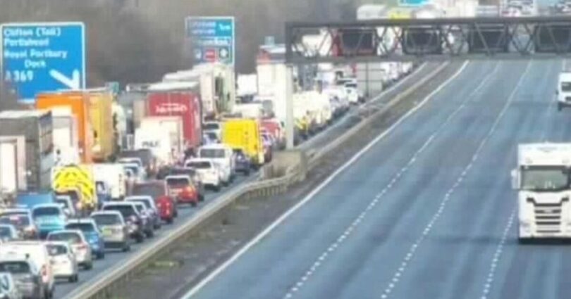 Traffic has been stopped in both directions on a busy section of the M5 due to a « police incident ». Motorway camera footage shows traffic chaos, with cars bumper-to-bumper and at a total standstill.