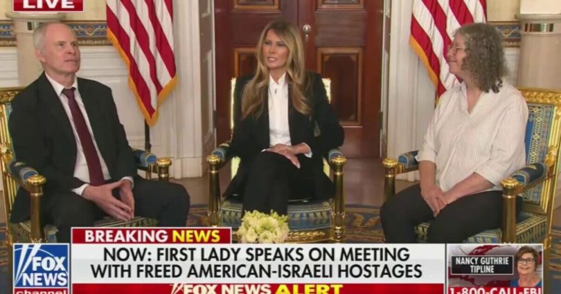 Melania Trump looked flustered after she was asked about Jeffrey Epstein’s former associate Ghislaine Maxwell during a press conference on Wednesday. The First Lady attended a press conference to meet with former Hamas hostages Aviva and Keith Siegel at the White House today, as the couple thanked the Trump administration for its efforts to get hostages freed. When it came to questions from the press, one interaction left Mrs Trump flustered as she quickly dodged the topic.