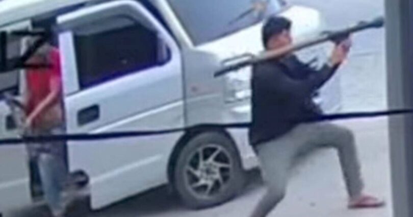 CCTV footage reveals a casually dressed man, wearing sandals, stepping out of a van with a rocket launcher slung over his shoulder before he targets the mayor’s SUV further down the road.