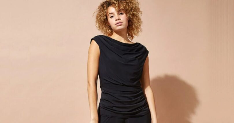 For shoppers who would prefer a cowl neckline top to pair with their choice of trousers, Next has a Mint Velvet Cream Draped Top costing £59. This neutral 100% viscose garment is available in sizes small to extra large.