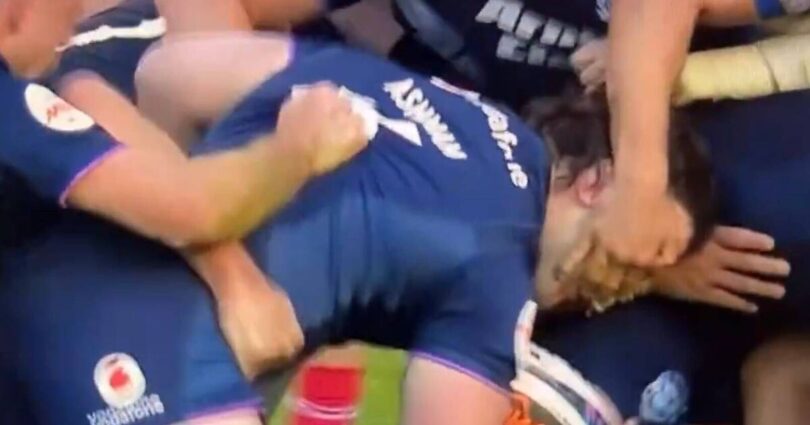 Confirming the citing on Sunday evening, an initial statement from tournament organisers read: « France (No. 7), Oscar Jégou, will attend an independent disciplinary hearing after he was cited for an act of foul play contrary to Law 9.12 (A player must not physically or verbally abuse anyone. Physical abuse includes, but is not limited to, biting, punching, contact with the eye or eye area, striking with any part of the arm, shoulder, head or knee(s), stamping, trampling, tripping or kicking) in the Men’s Six Nations Championship match between Scotland and France on Saturday 7th March 2026.