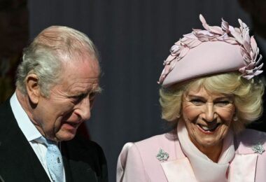 • Queen Camilla looks pretty in pink as she welcomes...