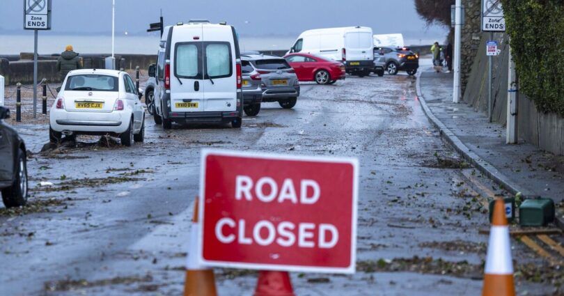 National Highways said « standing water has made the route impassable, and conditions remain hazardous. »