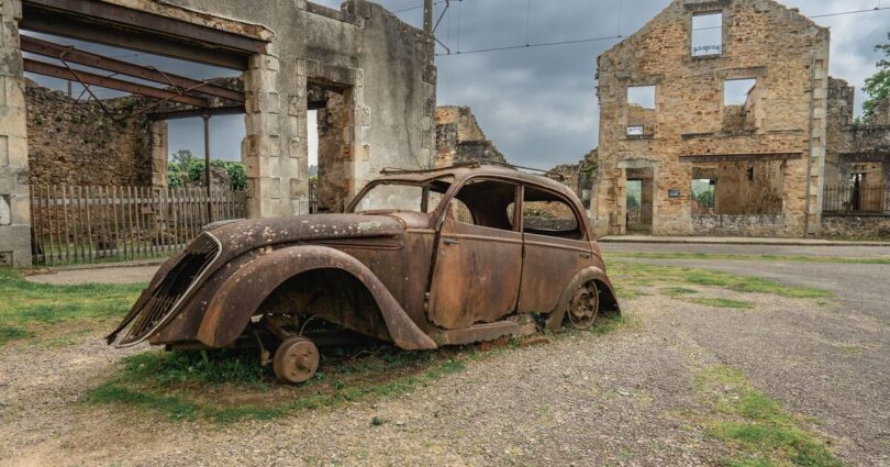 In the aftermath of the massacre, General Charles de Gaulle decreed that the ruined village would remain untouched as a permanent reminder of Nazi brutality.