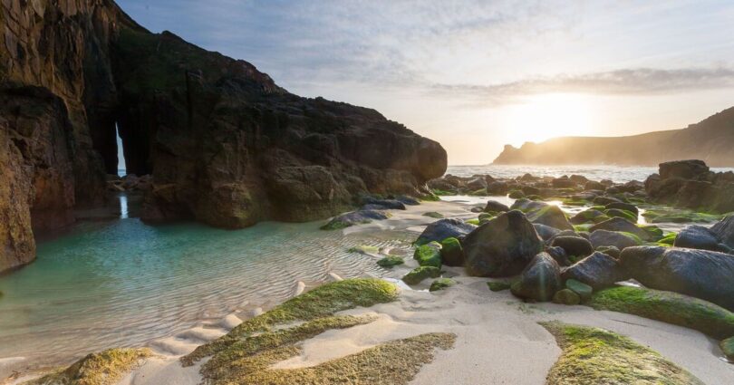 Nanjizal, a quaint beach in St Levan, is known for its striking natural stone formations, with a sparkling quartz vein known as Diamond Horse cutting through the rocks on the north shore, while a rock arch known as « song of the sea » frames the south of the beach. A Cornish tourism site run by locals, Cornish One, explained that the lack of facilities adds to the beach’s untouched beauty, deeming it a « small and secluded hidden gem that remains unspoiled ». Also known as Mill Bay, Nanjizal beach draws tourists in for its warm turquoise waters and remote location, where pebbles turn into golden sands as you reach the waves.