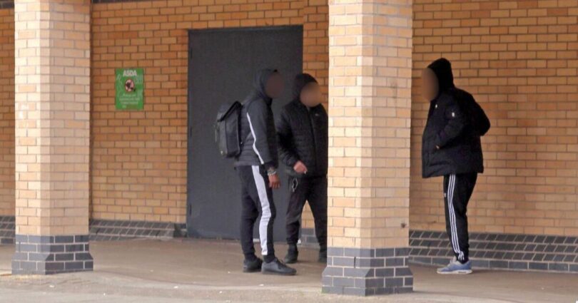 As we walk through Rivergate and towards Asda, the smell of marijuana becomes potent. There are groups of young men, dressed in all black, huddling in groups in the courtyard area between the shopping centre and the supermarket.