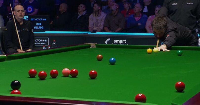 Williams ultimately prevailed 4-2 but only following an unusual interruption that required the referee to engage in an extended discussion with the marker, Kevin Dabrowski, the table-side official with access to a television monitor. Following Williams’ victory in the opening frame, Holt was at the table in the second when he potted a long red to a corner pocket. The on-table referee, Colin Humphries, announced « one » before, in VAR fashion, going over to the monitor, where he was made aware of an infringement.