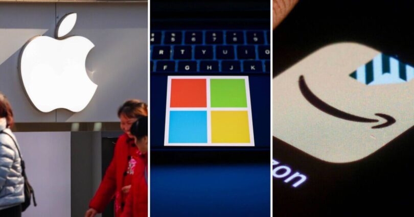 Microsoft was in the middle, thought to be worth $3.21trillion (£2.58trillion).